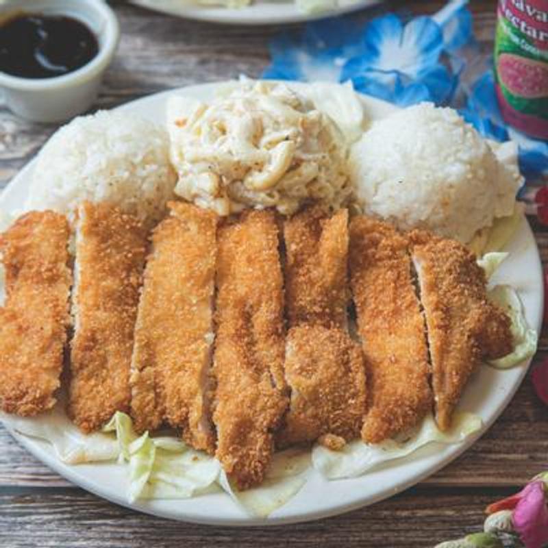 Pound chicken with meat tenderizer to flatten. JP Hawaiian KATSU is a Hawaiis version of Japanese dish that consists of a breaded deep-fried pork juicy chicken delicious fish fillet or crispy-fried shrimp cutlet. Rinse chicken and pat dry with paper towel.